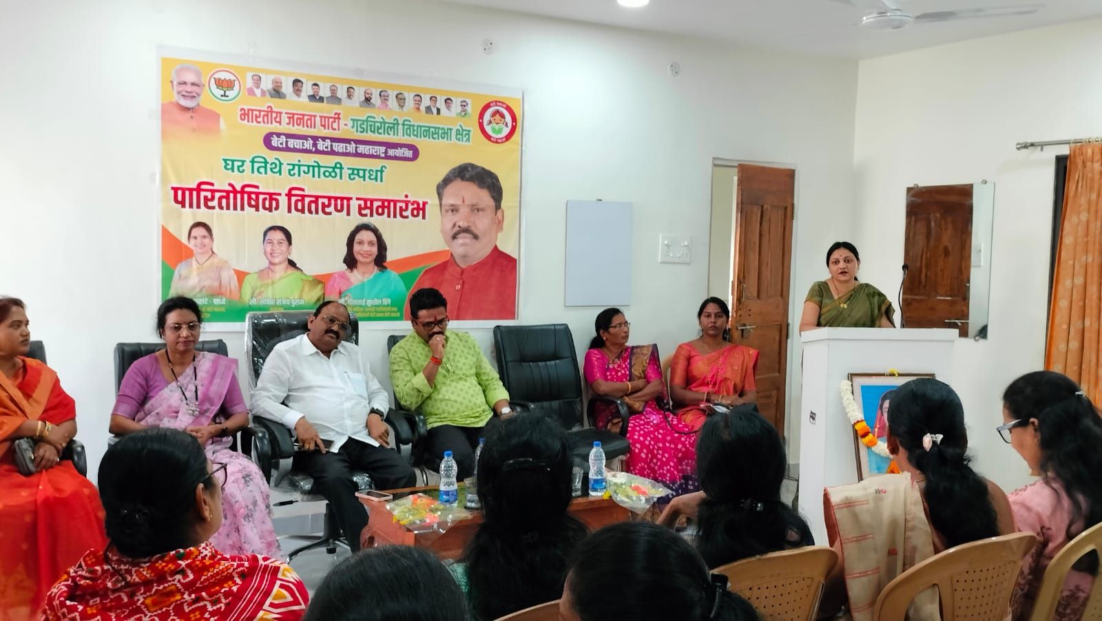 भारतीय जनता पार्टी महिला आघाडी गडचिरोलीच्या वतीने गडचिरोली विधानसभा क्षेत्रामध्ये बेटी बचाओ, बेटी पढाओ या योजनेच्या माध्यमातून घर तिथे रोंगोळी स्पर्धेचे आयोजन गीता हिंगे यांच्या निवासस्थानी आयोजित करण्यात आले होते. यावेळी मार्गदर्शन करतांना योगीता पिपरे बोलत होत्या.