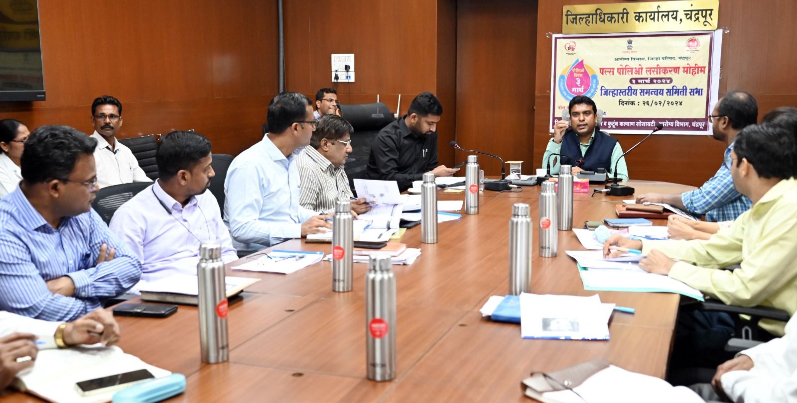 प्रतिनिधी / चंद्रपूर : दोन थेंब प्रत्येकवेळी....पोलिओ वर विजय दरवेळी या संकल्पनेनुसार रविवार ३ मार्च रोजी पल्स पोलिओ मोहीम संपूर्ण जिल्ह्यात राबविण्यात येणार आहे. यासाठी जिल्ह्यातील ० ते ५ वयोगटातील १ लक्ष ५५ हजार ४३५ बालकांना पोलिओ डोज देण्याचे उद्दिष्ट आहे. या मोहिमेच्या पूर्वतयारीबाबत जिल्हाधिकारी विनय गौडा जी.सी. यांनी आज २८ फेब्रुवारी आढावा बैठक घेतली.